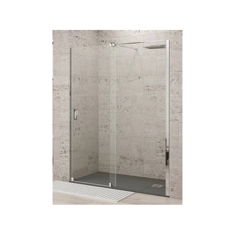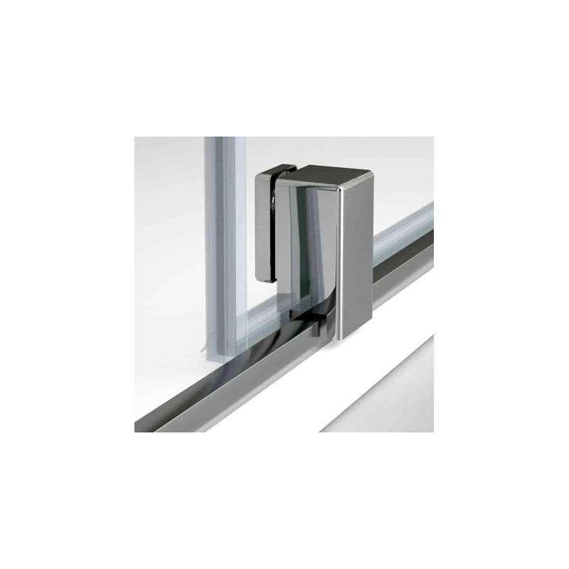 Mampara frontal compuesta por 1 hoja corredera + 1 hoja fija en cristal templado de seguridad de 8 mm.