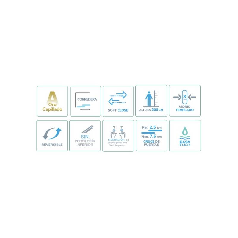 Mampara serie Pavía en aluminio anodizado Oro Cepillado (Kassandra).