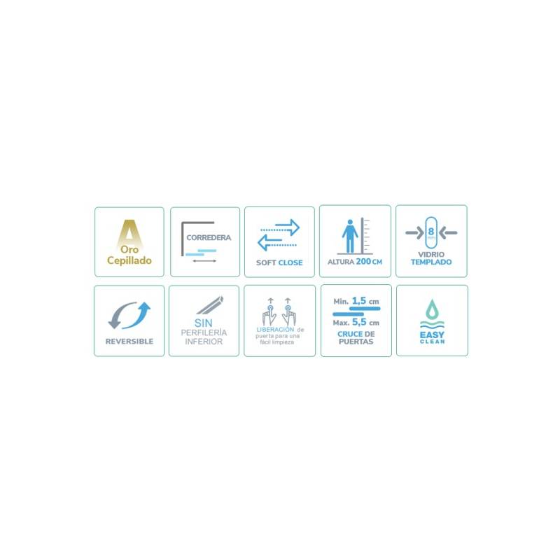 Mampara serie Pavía en aluminio anodizado Oro Cepillado (Kassandra).