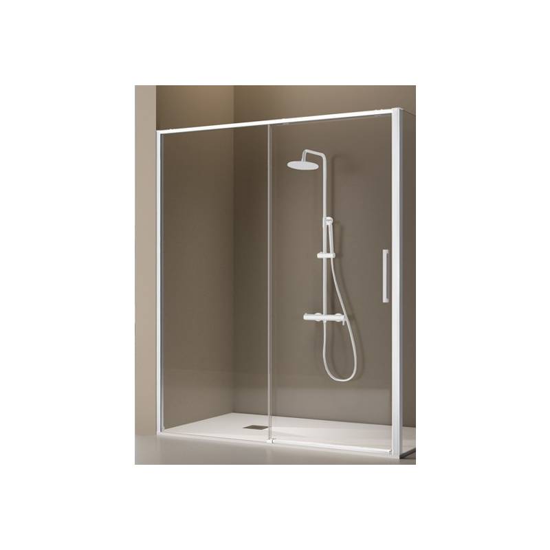 Está compuesta por un frontal de 1 cristal fijo y 1 hoja corredera de 6 mm en vidrio templado de seguridad.