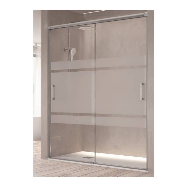 Está compuesta por 2 hojas correderas de 6 mm en vidrio templado de seguridad.