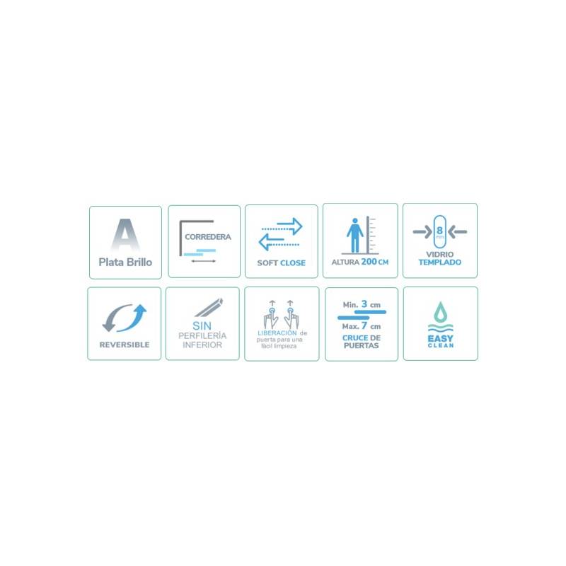 • Frente de ducha, 2 hojas fijas + 2 hojas correderas.